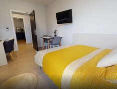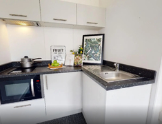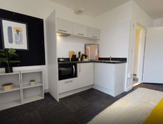 公寓提供多种房型,包括studio和ensuite。现代化的客房设施齐全,配备双人床、书桌椅、衣柜以及其他储物空间,满足日常所需。公寓还提供设备齐全的厨房,配备炉灶、微波炉、冰箱、水槽和食品柜。